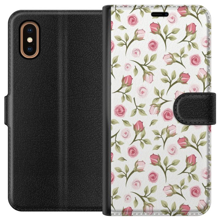 Plånboksfodral för iPhone XS Max med Blommigt -design. Fodralet kombinerar stil och funktion – ett slitstarkt mobilskal som skyddar mot repor och stötar samt praktiska kortfack på insidan.
