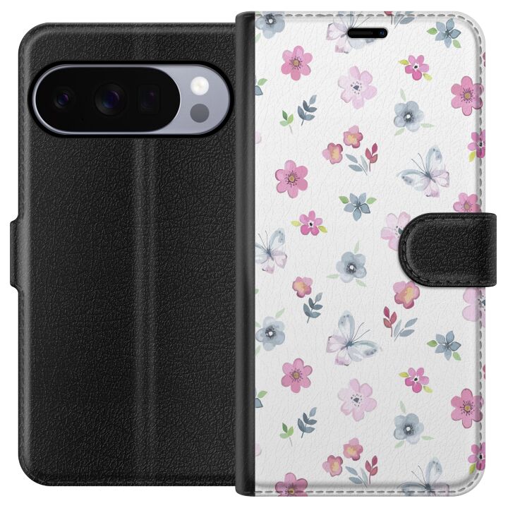 Plånboksfodral för Pixel 10 Pro XL med Blommor och fjärillar -design. Fodralet kombinerar stil och funktion – ett slitstarkt mobilskal som skyddar mot repor och stötar samt praktiska kortfack på insidan.