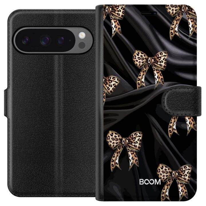 Plånboksfodral för Pixel 9 Pro XL med Leopard Bow -design. Fodralet kombinerar stil och funktion – ett slitstarkt mobilskal som skyddar mot repor och stötar samt praktiska kortfack på insidan.