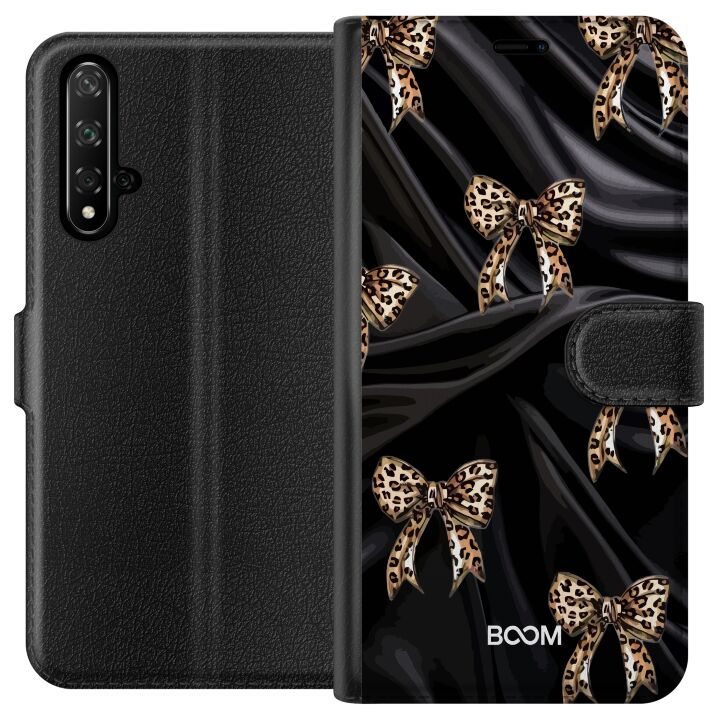 Plånboksfodral för 20 med Leopard Bow -design. Fodralet kombinerar stil och funktion – ett slitstarkt mobilskal som skyddar mot repor och stötar samt praktiska kortfack på insidan.