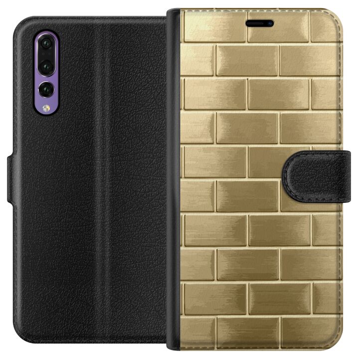 Plånboksfodral för P20 Pro med Gyllene Murstenar -design. Fodralet kombinerar stil och funktion – ett slitstarkt mobilskal som skyddar mot repor och stötar samt praktiska kortfack på insidan.