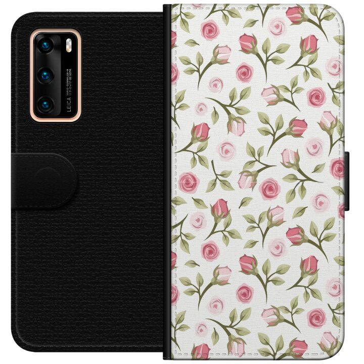Plånboksfodral för P40 med Blommigt -design. Fodralet kombinerar stil och funktion – ett slitstarkt mobilskal som skyddar mot repor och stötar samt praktiska kortfack på insidan.