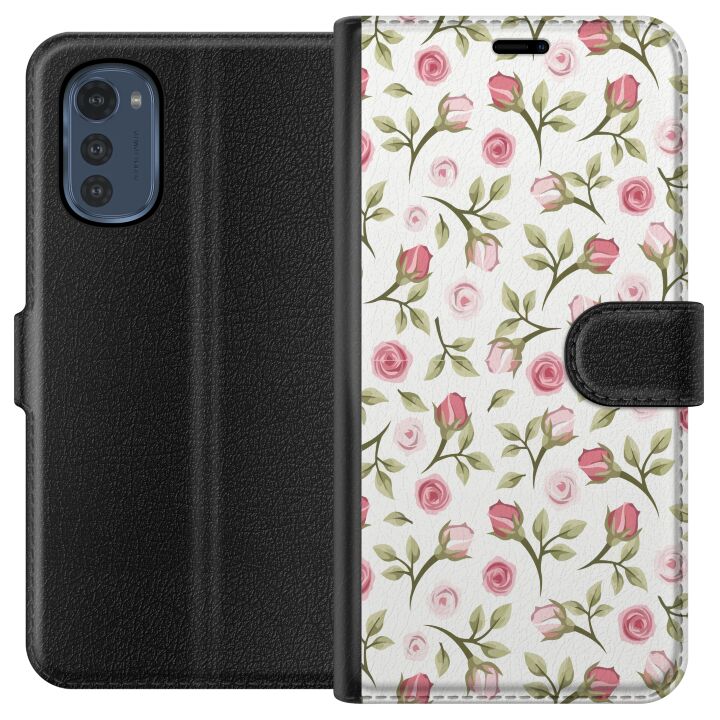Plånboksfodral för Moto E32s med Blommigt -design. Fodralet kombinerar stil och funktion – ett slitstarkt mobilskal som skyddar mot repor och stötar samt praktiska kortfack på insidan.