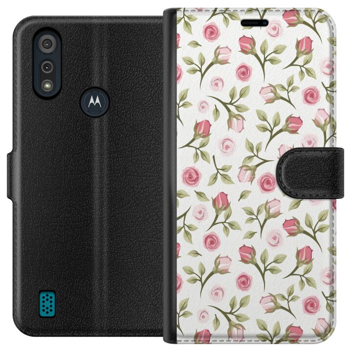 Plånboksfodral för Moto E6i med Blommigt -design. Fodralet kombinerar stil och funktion – ett slitstarkt mobilskal som skyddar mot repor och stötar samt praktiska kortfack på insidan.