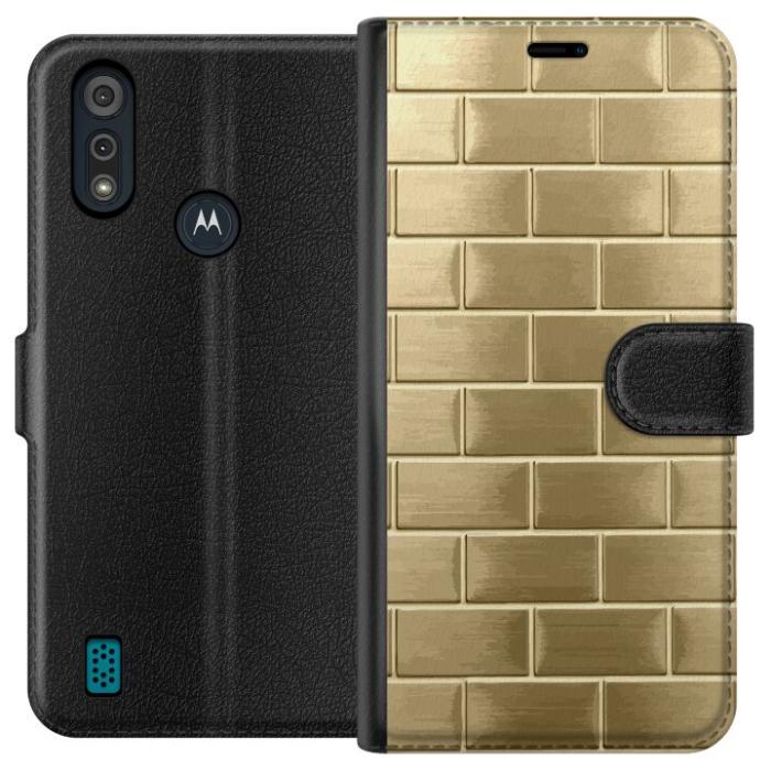 Plånboksfodral för Moto E6i med Gyllene Murstenar -design. Fodralet kombinerar stil och funktion – ett slitstarkt mobilskal som skyddar mot repor och stötar samt praktiska kortfack på insidan.