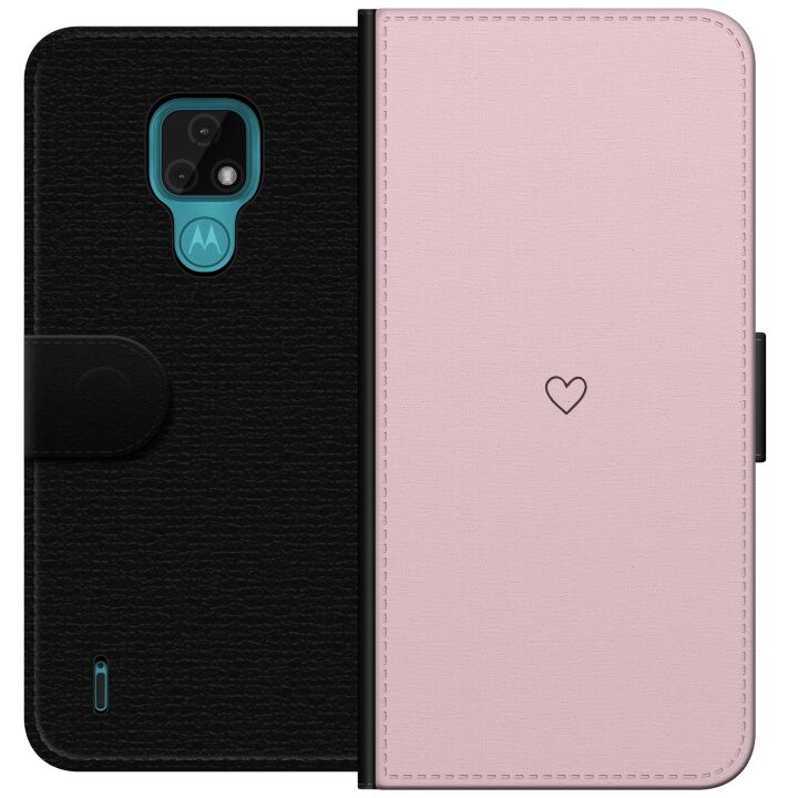 Plånboksfodral för Moto E7 med Litet Hjärta -design. Fodralet kombinerar stil och funktion – ett slitstarkt mobilskal som skyddar mot repor och stötar samt praktiska kortfack på insidan.