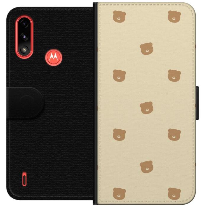 Plånboksfodral för Moto E7 Power med Björnmönster -design. Fodralet kombinerar stil och funktion – ett slitstarkt mobilskal som skyddar mot repor och stötar samt praktiska kortfack på insidan.