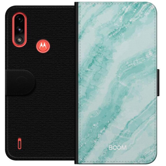 Plånboksfodral för Moto E7 Power med Mint Marble -design. Fodralet kombinerar stil och funktion – ett slitstarkt mobilskal som skyddar mot repor och stötar samt praktiska kortfack på insidan.
