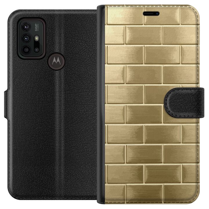 Plånboksfodral för Moto G30 med Gyllene Murstenar -design. Fodralet kombinerar stil och funktion – ett slitstarkt mobilskal som skyddar mot repor och stötar samt praktiska kortfack på insidan.