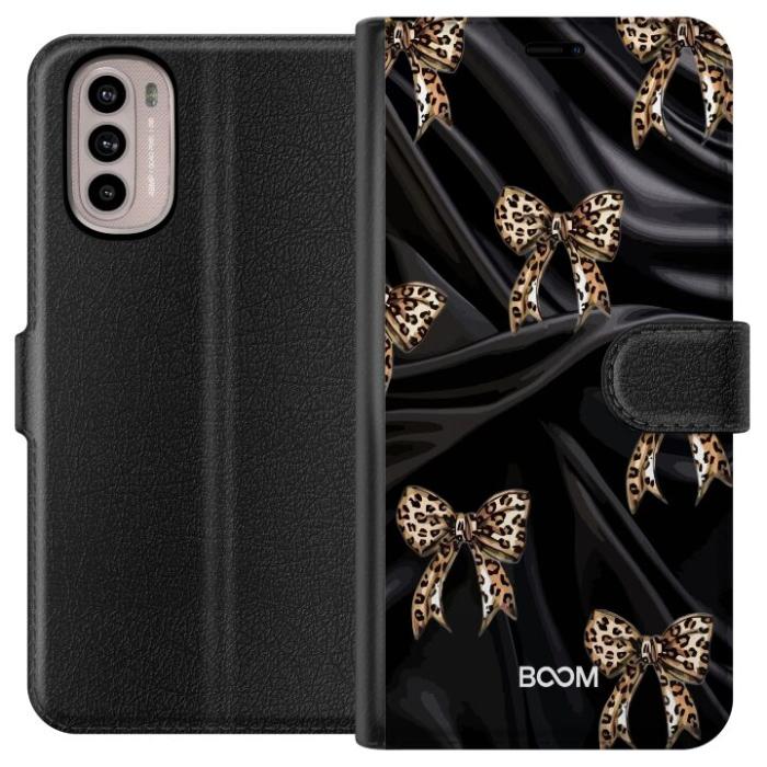 Plånboksfodral för Moto G41 med Leopard Bow -design. Fodralet kombinerar stil och funktion – ett slitstarkt mobilskal som skyddar mot repor och stötar samt praktiska kortfack på insidan.