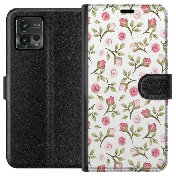 Plånboksfodral för Moto G72 med Blommigt -design. Fodralet kombinerar stil och funktion – ett slitstarkt mobilskal som skyddar mot repor och stötar samt praktiska kortfack på insidan.