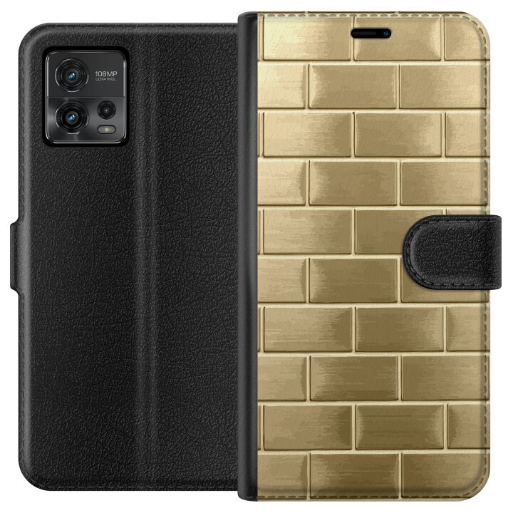 Plånboksfodral för Moto G72 med Gyllene Murstenar -design. Fodralet kombinerar stil och funktion – ett slitstarkt mobilskal som skyddar mot repor och stötar samt praktiska kortfack på insidan.