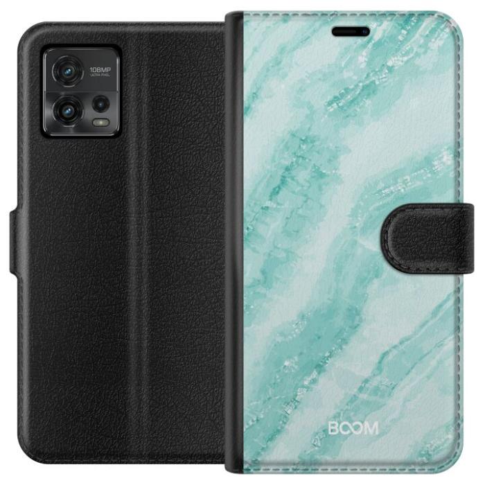 Plånboksfodral för Moto G72 med Mint Marble -design. Fodralet kombinerar stil och funktion – ett slitstarkt mobilskal som skyddar mot repor och stötar samt praktiska kortfack på insidan.