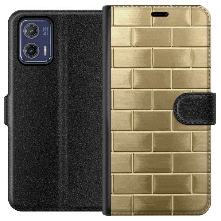 Plånboksfodral för Moto G73 med Gyllene Murstenar -design. Fodralet kombinerar stil och funktion – ett slitstarkt mobilskal som skyddar mot repor och stötar samt praktiska kortfack på insidan.