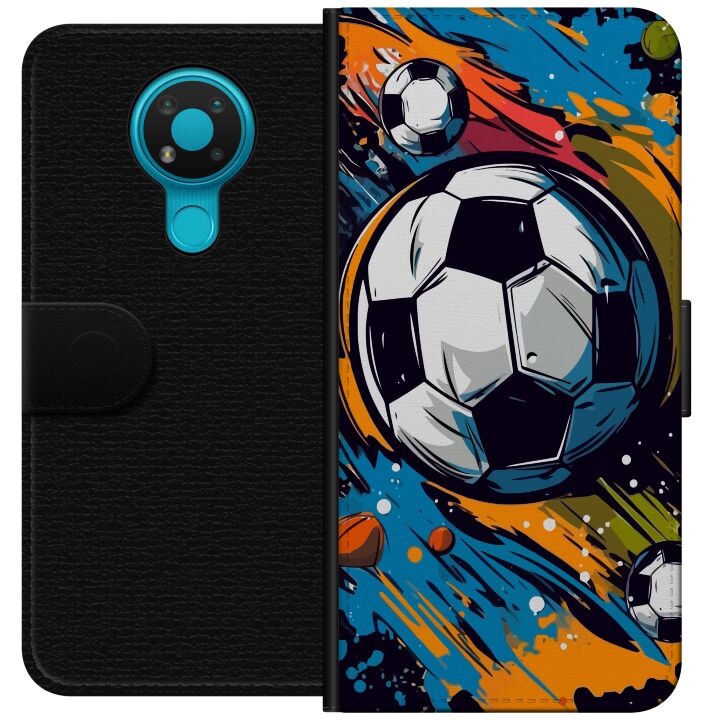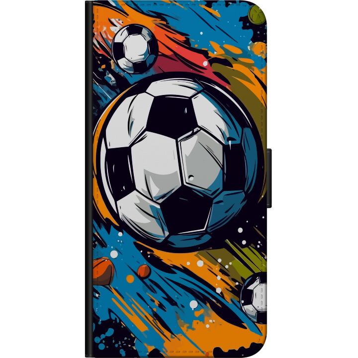 Plånboksfodral för 3.4 med Fotbollar -design. Fodralet kombinerar stil och funktion – ett slitstarkt mobilskal som skyddar mot repor och stötar samt praktiska kortfack på insidan.