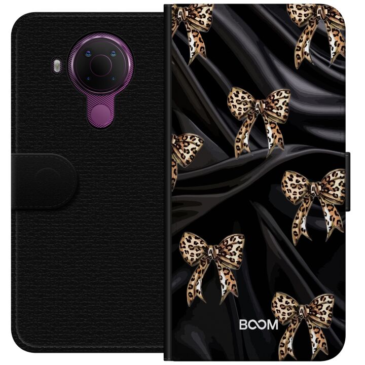 Plånboksfodral för 5.4 med Leopard Bow -design. Fodralet kombinerar stil och funktion – ett slitstarkt mobilskal som skyddar mot repor och stötar samt praktiska kortfack på insidan.