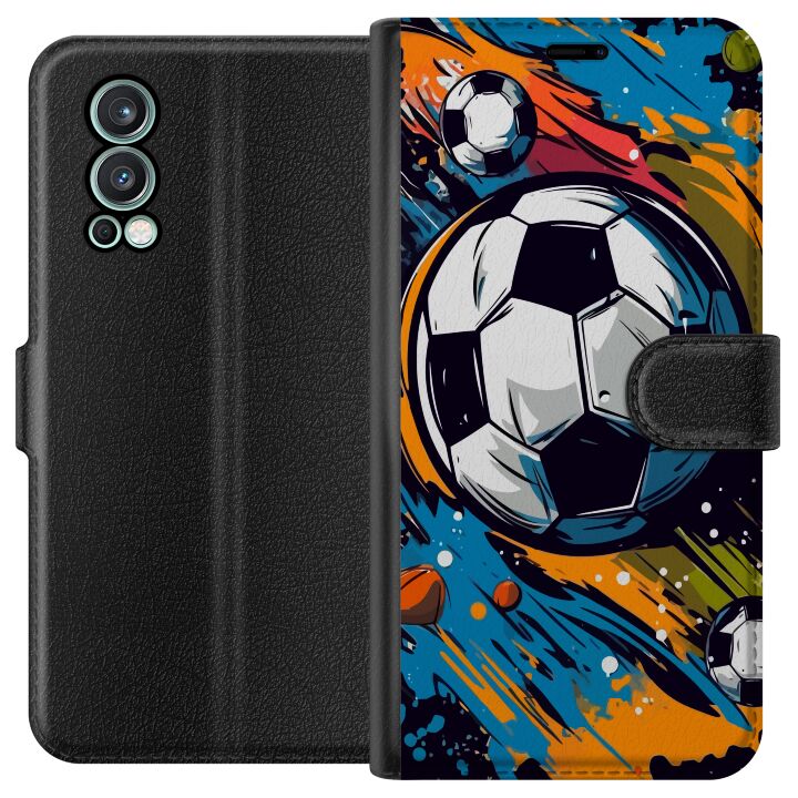 Plånboksfodral för Nord 2 5G med Fotbollar -design. Fodralet kombinerar stil och funktion – ett slitstarkt mobilskal som skyddar mot repor och stötar samt praktiska kortfack på insidan.