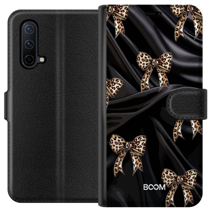 Plånboksfodral för Nord CE 5G med Leopard Bow -design. Fodralet kombinerar stil och funktion – ett slitstarkt mobilskal som skyddar mot repor och stötar samt praktiska kortfack på insidan.