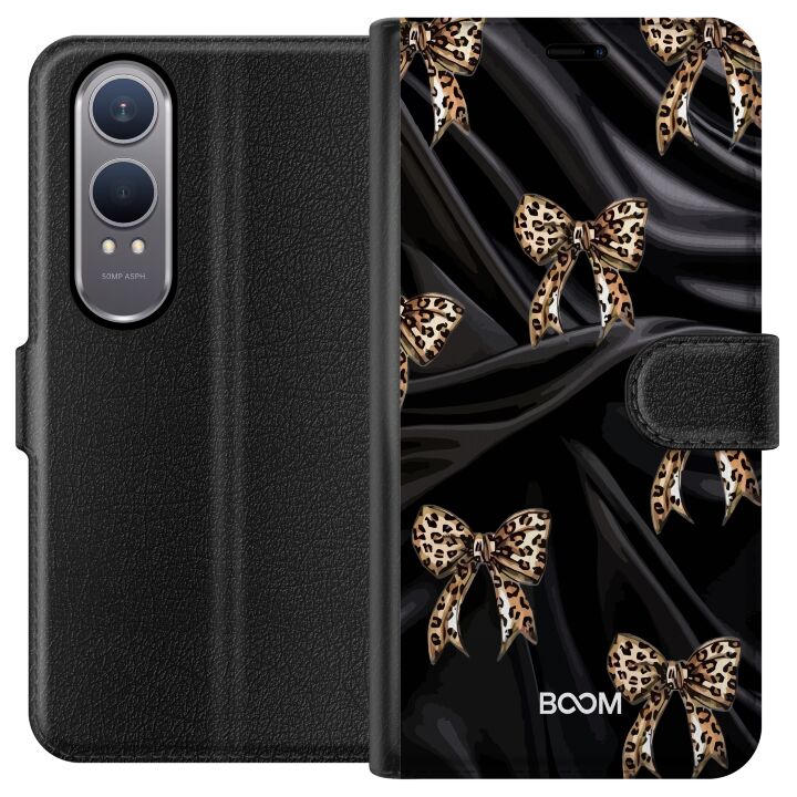 Plånboksfodral för Nord CE4 Lite med Leopard Bow -design. Fodralet kombinerar stil och funktion – ett slitstarkt mobilskal som skyddar mot repor och stötar samt praktiska kortfack på insidan.