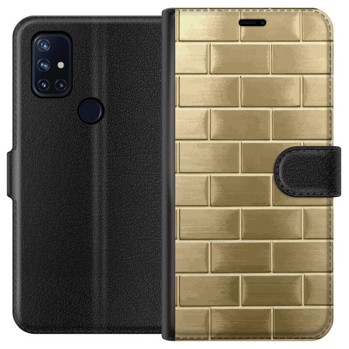 Plånboksfodral för Nord N10 5G med Gyllene Murstenar -design. Fodralet kombinerar stil och funktion – ett slitstarkt mobilskal som skyddar mot repor och stötar samt praktiska kortfack på insidan.
