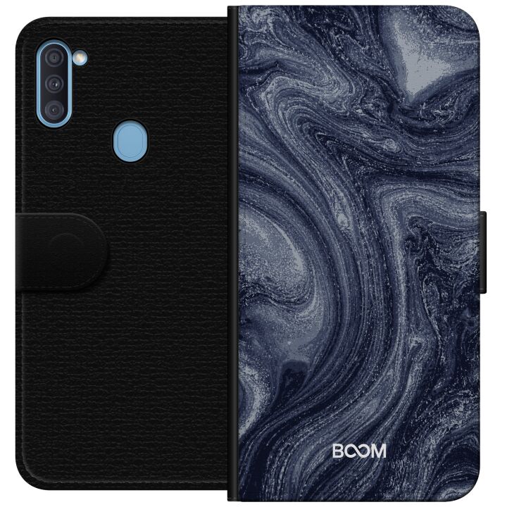 Plånboksfodral för Galaxy A11 med Midnight Stone -design. Fodralet kombinerar stil och funktion – ett slitstarkt mobilskal som skyddar mot repor och stötar samt praktiska kortfack på insidan.
