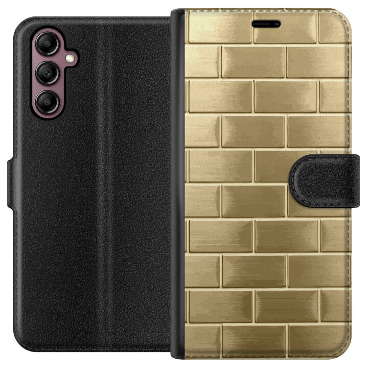 Plånboksfodral för Galaxy A14 5G med Gyllene Murstenar -design. Fodralet kombinerar stil och funktion – ett slitstarkt mobilskal som skyddar mot repor och stötar samt praktiska kortfack på insidan.