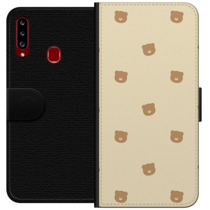 Plånboksfodral för Galaxy A20s med Björnmönster -design. Fodralet kombinerar stil och funktion – ett slitstarkt mobilskal som skyddar mot repor och stötar samt praktiska kortfack på insidan.
