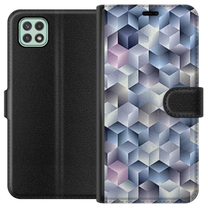 Plånboksfodral för Galaxy A22 5G med Cyklon -design. Fodralet kombinerar stil och funktion – ett slitstarkt mobilskal som skyddar mot repor och stötar samt praktiska kortfack på insidan.