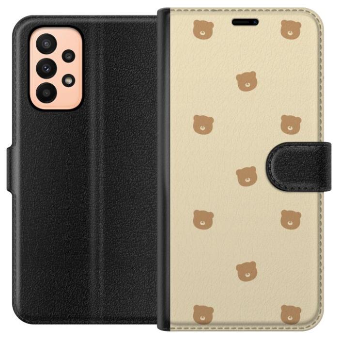 Plånboksfodral för Galaxy A23 med Björnmönster -design. Fodralet kombinerar stil och funktion – ett slitstarkt mobilskal som skyddar mot repor och stötar samt praktiska kortfack på insidan.