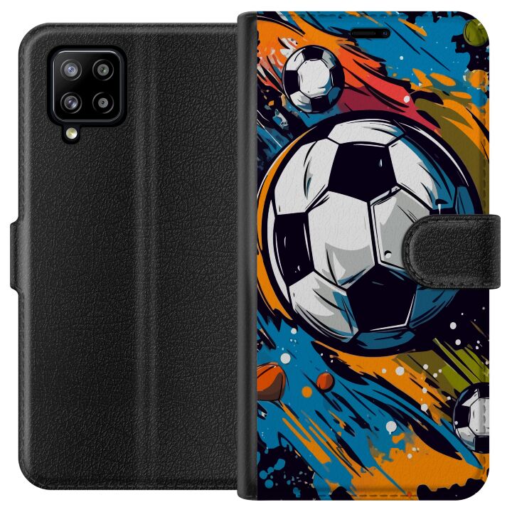 Plånboksfodral för Galaxy A42 5G med Fotbollar -design. Fodralet kombinerar stil och funktion – ett slitstarkt mobilskal som skyddar mot repor och stötar samt praktiska kortfack på insidan.
