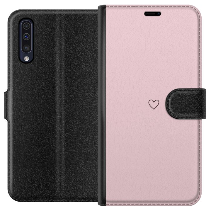 Plånboksfodral för Galaxy A50 med Litet Hjärta -design. Fodralet kombinerar stil och funktion – ett slitstarkt mobilskal som skyddar mot repor och stötar samt praktiska kortfack på insidan.