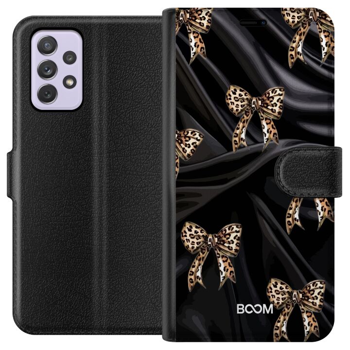 Plånboksfodral för Galaxy A52s 5G med Leopard Bow -design. Fodralet kombinerar stil och funktion – ett slitstarkt mobilskal som skyddar mot repor och stötar samt praktiska kortfack på insidan.
