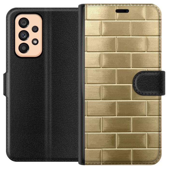 Plånboksfodral för Galaxy A53 5G med Gyllene Murstenar -design. Fodralet kombinerar stil och funktion – ett slitstarkt mobilskal som skyddar mot repor och stötar samt praktiska kortfack på insidan.