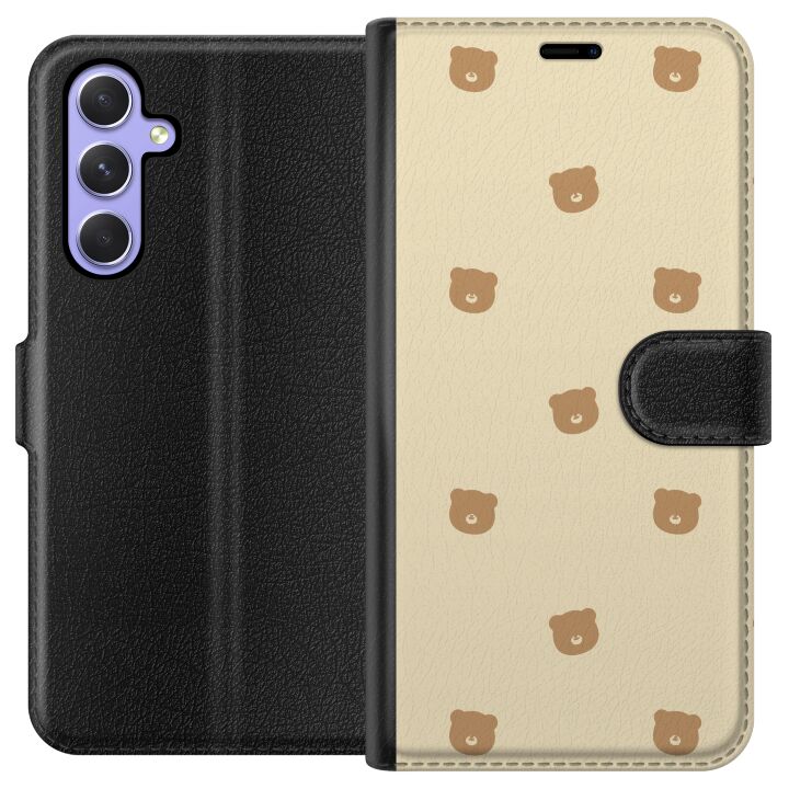 Plånboksfodral för Galaxy A54 med Björnmönster -design. Fodralet kombinerar stil och funktion – ett slitstarkt mobilskal som skyddar mot repor och stötar samt praktiska kortfack på insidan.