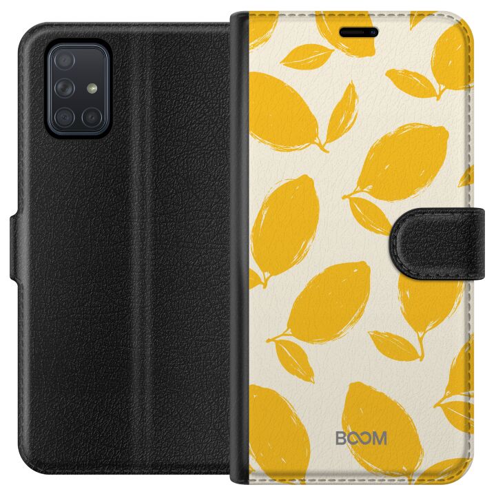 Plånboksfodral för Galaxy A71 med Lemon Breeze -design. Fodralet kombinerar stil och funktion – ett slitstarkt mobilskal som skyddar mot repor och stötar samt praktiska kortfack på insidan.