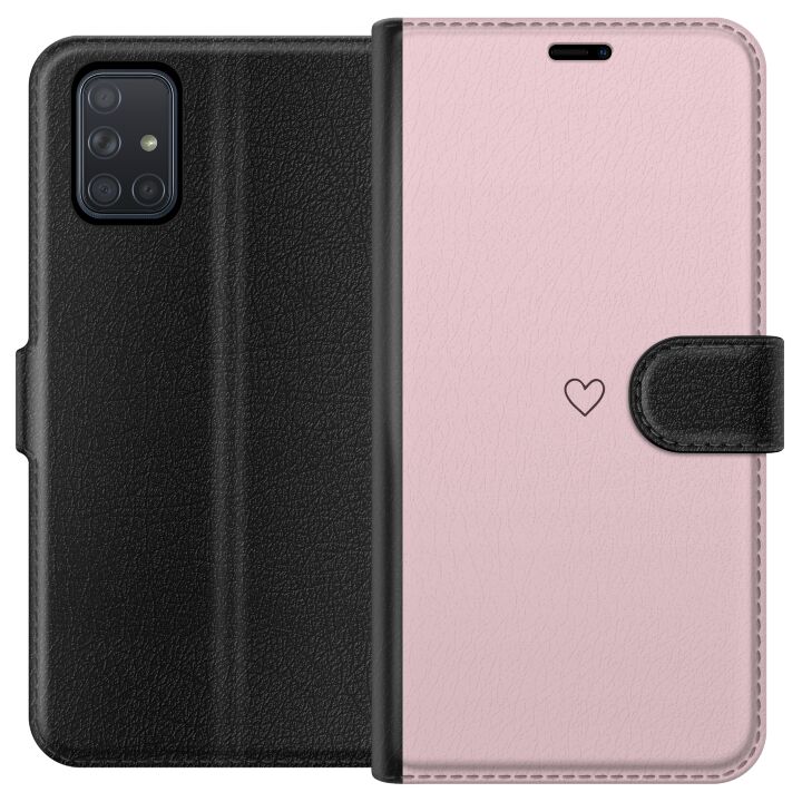 Plånboksfodral för Galaxy A71 med Litet Hjärta -design. Fodralet kombinerar stil och funktion – ett slitstarkt mobilskal som skyddar mot repor och stötar samt praktiska kortfack på insidan.