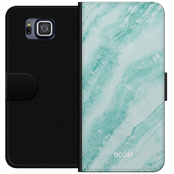 Plånboksfodral för Galaxy Alpha med Mint Marble -design. Fodralet kombinerar stil och funktion – ett slitstarkt mobilskal som skyddar mot repor och stötar samt praktiska kortfack på insidan.