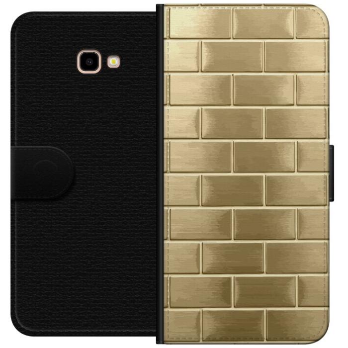 Plånboksfodral för Galaxy J4+ med Gyllene Murstenar -design. Fodralet kombinerar stil och funktion – ett slitstarkt mobilskal som skyddar mot repor och stötar samt praktiska kortfack på insidan.