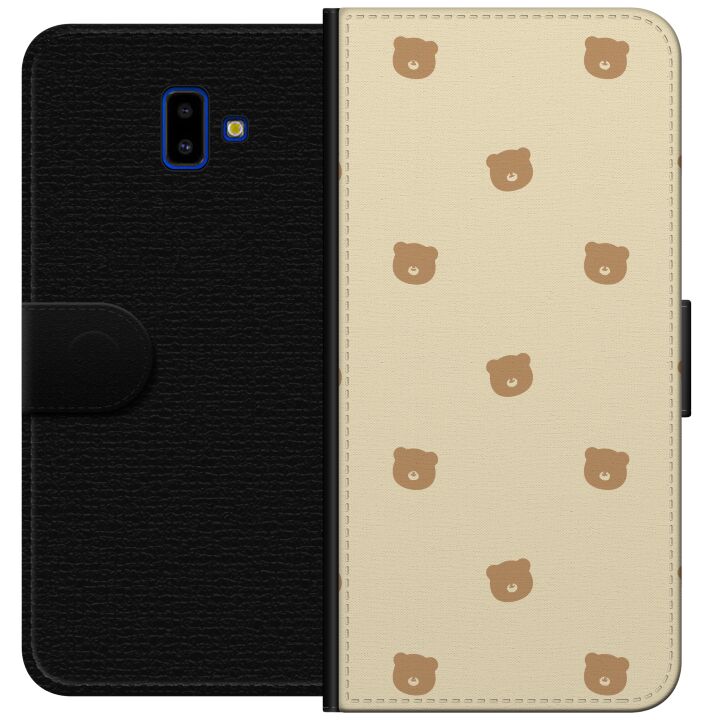 Plånboksfodral för Galaxy J6+ med Björnmönster -design. Fodralet kombinerar stil och funktion – ett slitstarkt mobilskal som skyddar mot repor och stötar samt praktiska kortfack på insidan.