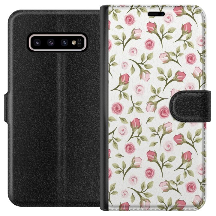 Plånboksfodral för Galaxy S10+ med Blommigt -design. Fodralet kombinerar stil och funktion – ett slitstarkt mobilskal som skyddar mot repor och stötar samt praktiska kortfack på insidan.