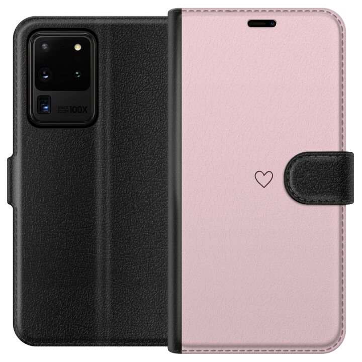 Plånboksfodral för Galaxy S20 Ultra med Litet Hjärta -design. Fodralet kombinerar stil och funktion – ett slitstarkt mobilskal som skyddar mot repor och stötar samt praktiska kortfack på insidan.