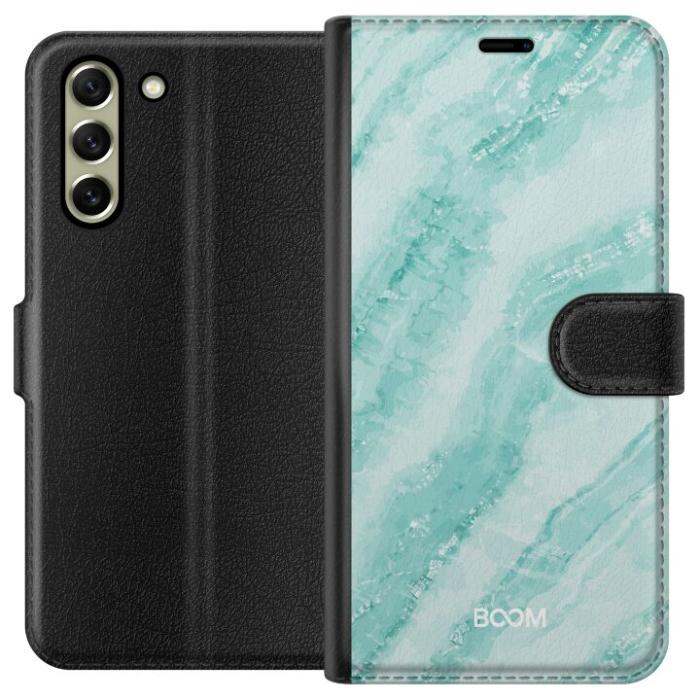 Plånboksfodral för Galaxy S21 FE 5G med Mint Marble -design. Fodralet kombinerar stil och funktion – ett slitstarkt mobilskal som skyddar mot repor och stötar samt praktiska kortfack på insidan.