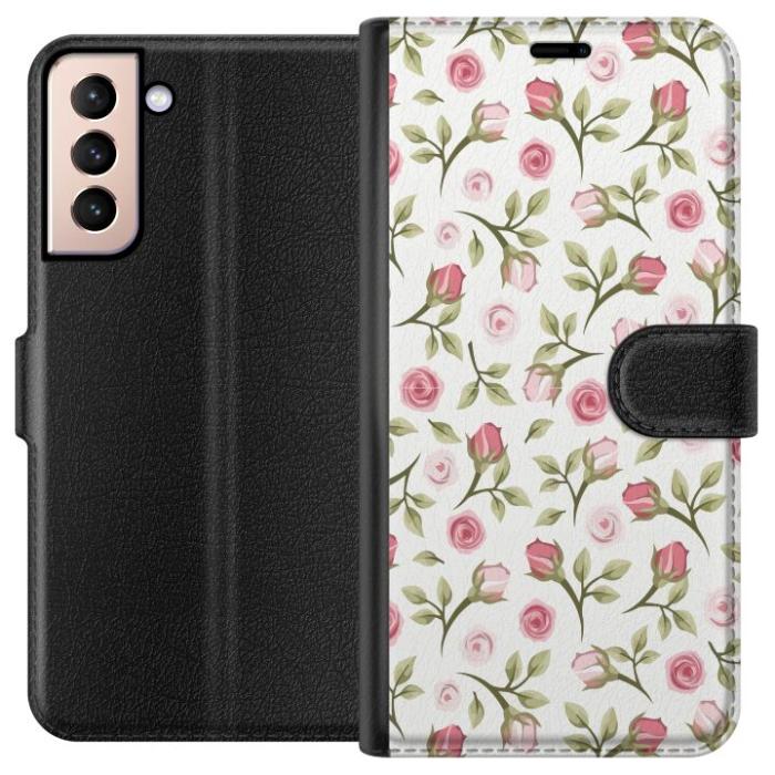 Plånboksfodral för Galaxy S21 med Blommigt -design. Fodralet kombinerar stil och funktion – ett slitstarkt mobilskal som skyddar mot repor och stötar samt praktiska kortfack på insidan.