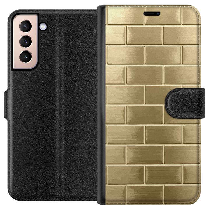 Plånboksfodral för Galaxy S21 med Gyllene Murstenar -design. Fodralet kombinerar stil och funktion – ett slitstarkt mobilskal som skyddar mot repor och stötar samt praktiska kortfack på insidan.