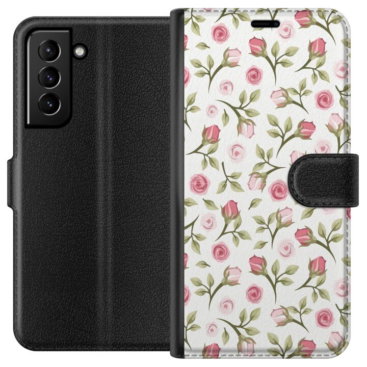 Plånboksfodral för Galaxy S21+ 5G med Blommigt -design. Fodralet kombinerar stil och funktion – ett slitstarkt mobilskal som skyddar mot repor och stötar samt praktiska kortfack på insidan.