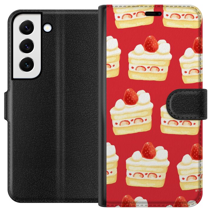 Plånboksfodral för Galaxy S22+ 5G med Tårta -design. Fodralet kombinerar stil och funktion – ett slitstarkt mobilskal som skyddar mot repor och stötar samt praktiska kortfack på insidan.