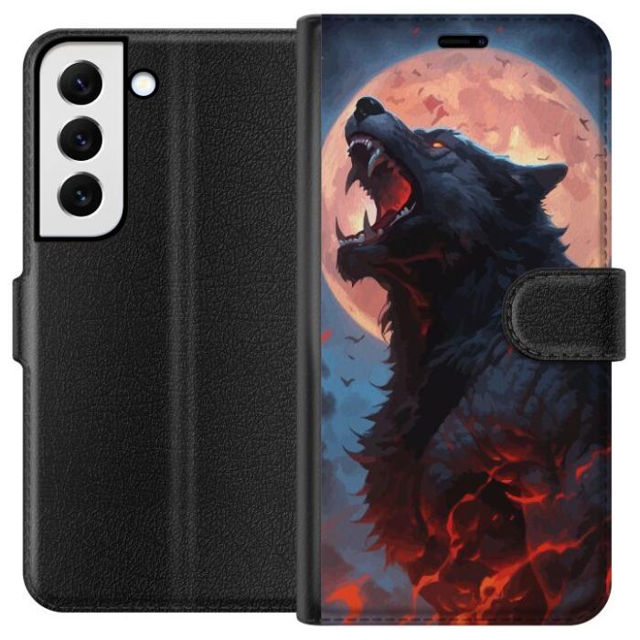 Plånboksfodral för Galaxy S22+ 5G med Ylande varg -design. Fodralet kombinerar stil och funktion – ett slitstarkt mobilskal som skyddar mot repor och stötar samt praktiska kortfack på insidan.