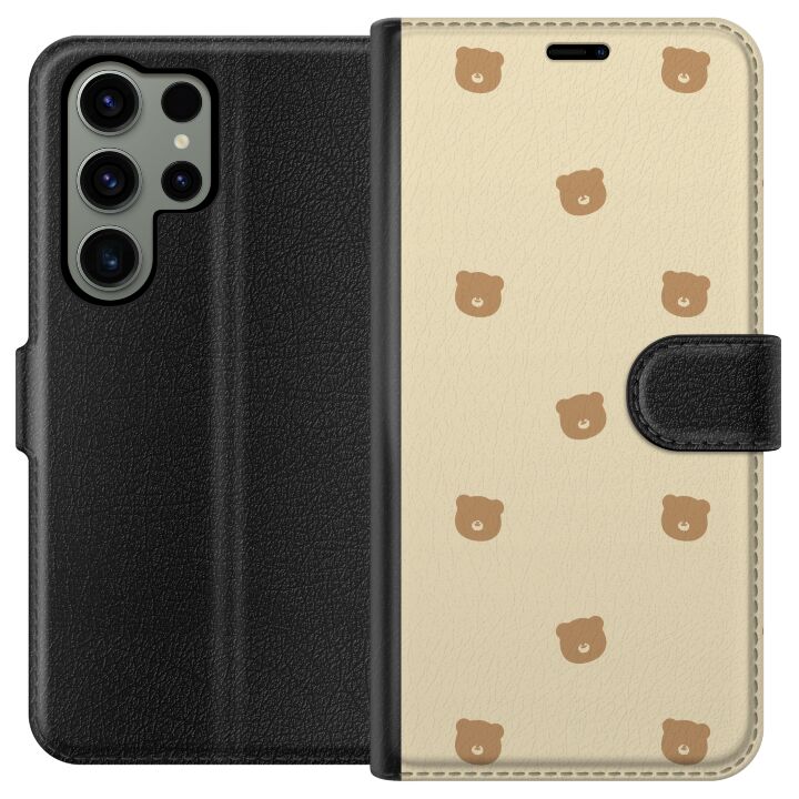 Plånboksfodral för Galaxy S23 Ultra med Björnmönster -design. Fodralet kombinerar stil och funktion – ett slitstarkt mobilskal som skyddar mot repor och stötar samt praktiska kortfack på insidan.