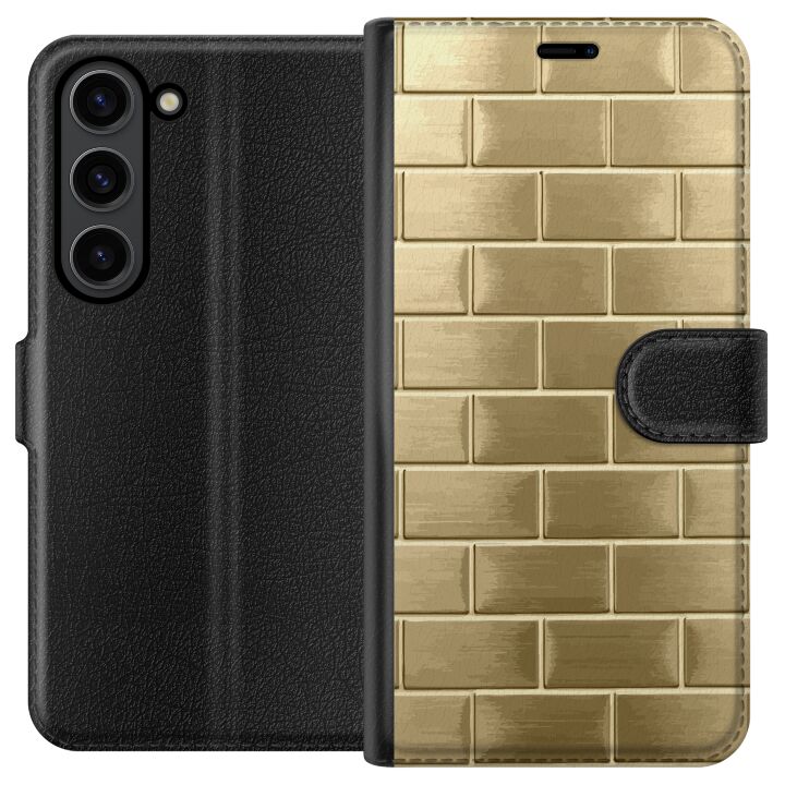 Plånboksfodral för Galaxy S24+ med Gyllene Murstenar -design. Fodralet kombinerar stil och funktion – ett slitstarkt mobilskal som skyddar mot repor och stötar samt praktiska kortfack på insidan.