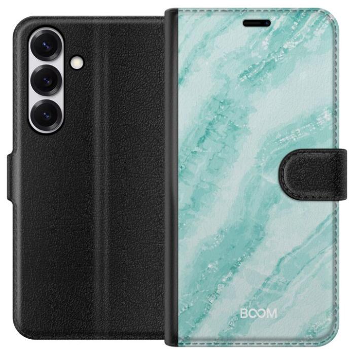 Plånboksfodral för Galaxy S25 med Mint Marble -design. Fodralet kombinerar stil och funktion – ett slitstarkt mobilskal som skyddar mot repor och stötar samt praktiska kortfack på insidan.